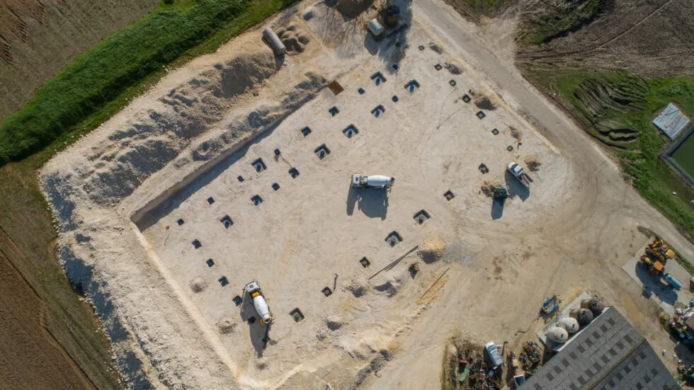 Sur cette magnifique plateforme, nous avons réalisé les fondations d’un bâtiment agricole fermé sur