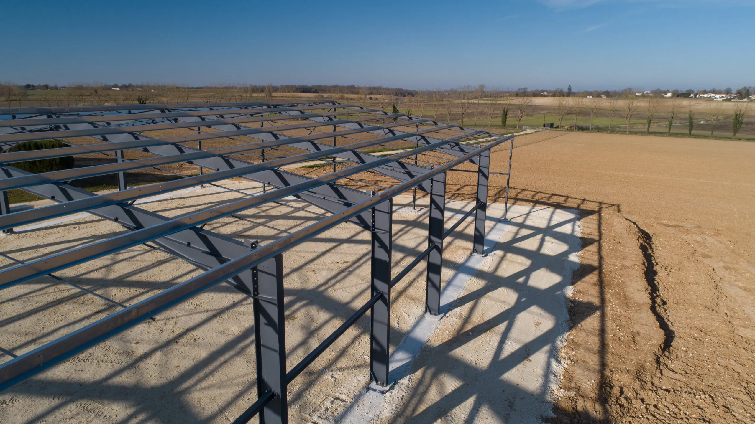 Dans une zone dynamique de la Charente-Maritime, entre Royan et Saintes, nous avons réalisé un clos couvert d’un bâtiment agricole d’atelier et de stockage.