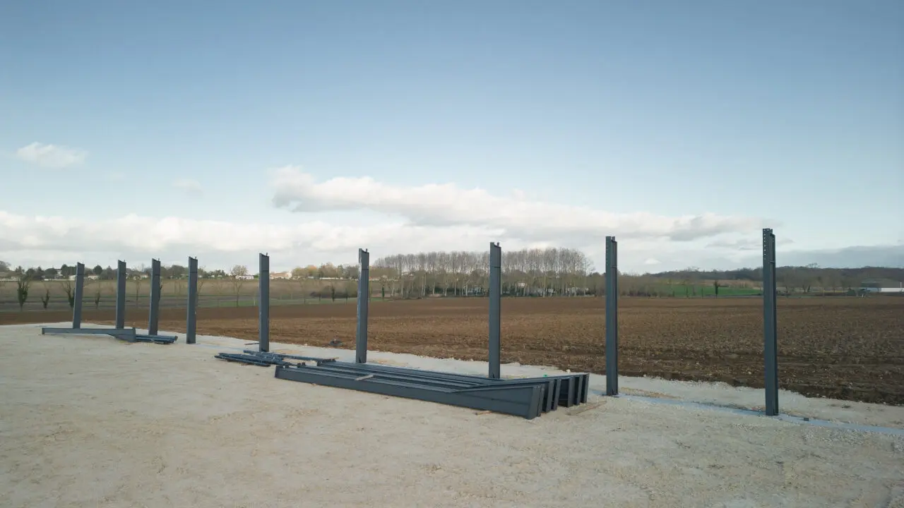 Dans une zone dynamique de la Charente-Maritime, entre Royan et Saintes, nous avons réalisé un clos couvert d’un bâtiment agricole d’atelier et de stockage.